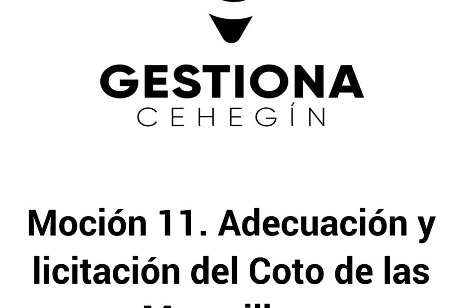D. Matías Gabarrón Pérez, concejal del Grupo Municipal Gestiona Cehegín, presenta al Pleno Municipal del Ayuntamiento de Cehegín la siguiente moción: ADECUACIÓN Y LICITACIÓN DEL… Leer más »Moción 11. Adecuación y licitación del Coto de las Maravillas.