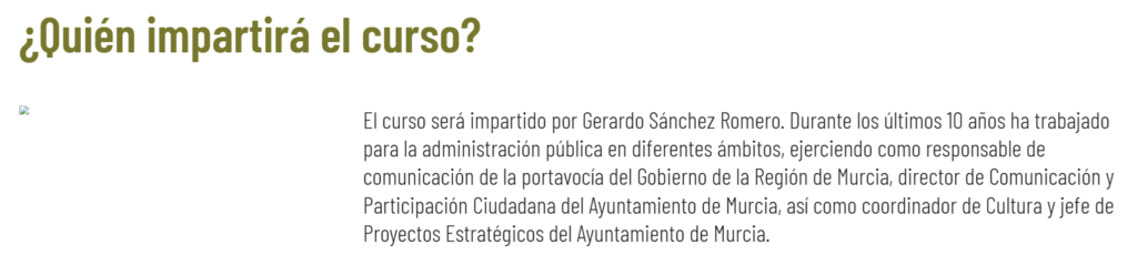 Que todos se suscribieran después de este curso impartido por alguien que destaca que ‘los últimos 10 años ha trabajado para la administración pública en diferentes ámbitos’, todos ellos vinculados al Partido Popular, es curioso como poco, ¿verdad?