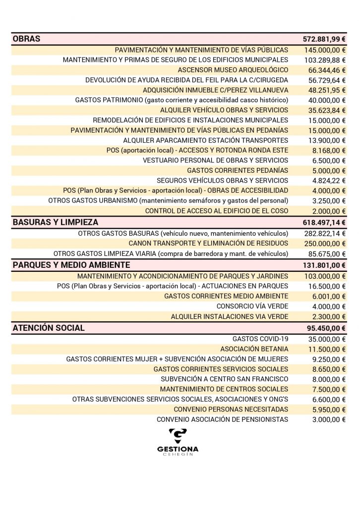– Hemos diferenciando entre gasto en personal (trabajadores públicos, personal temporal o asociado a servicios subcontratados) y el gasto corriente. Con algunos gastos esto es complicado de establecer, por lo que sí, lo hemos clasificado de forma arbitraria.
